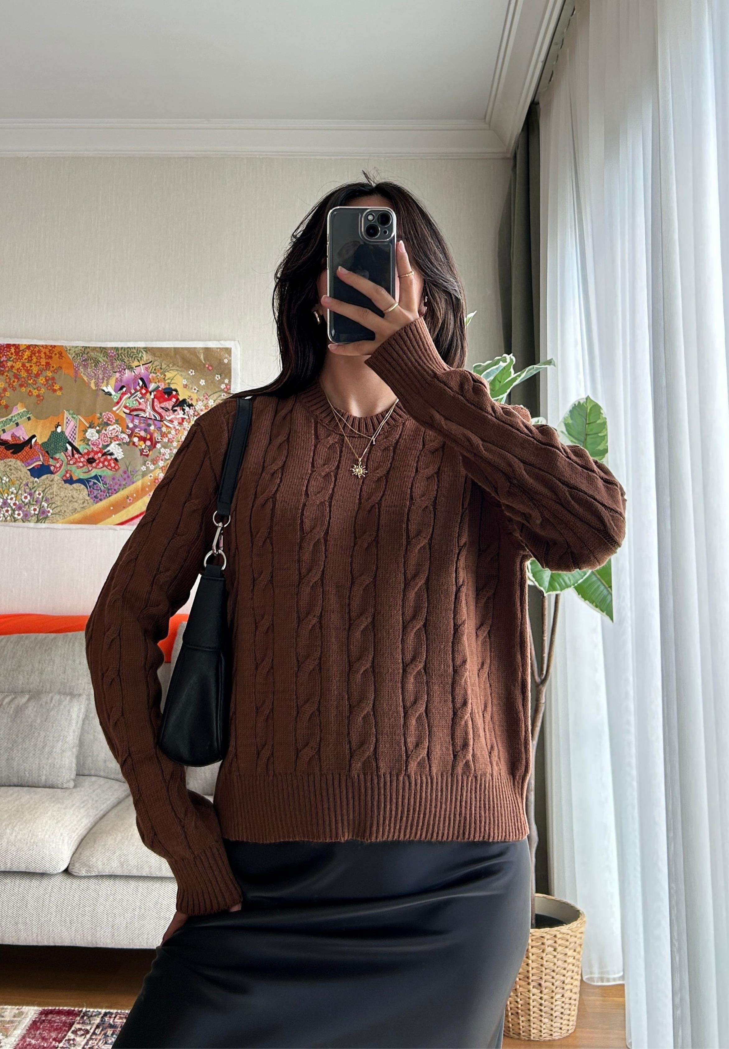 Akiha Örgü Desenli Kazak Kahve