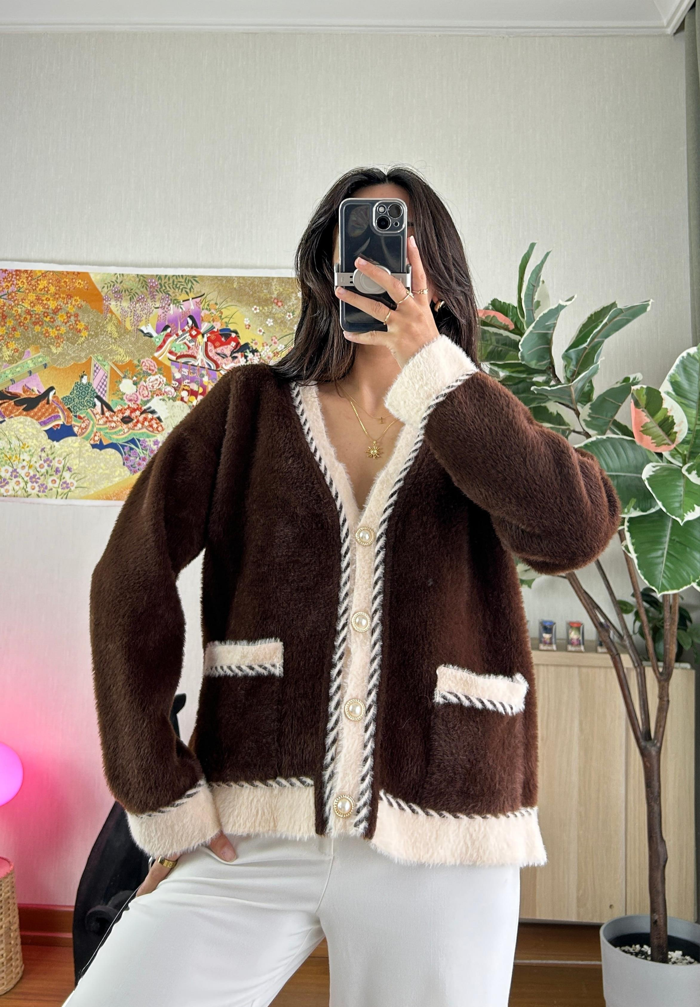 Shun Cep Detaylı Yumoş Hırka Kahve