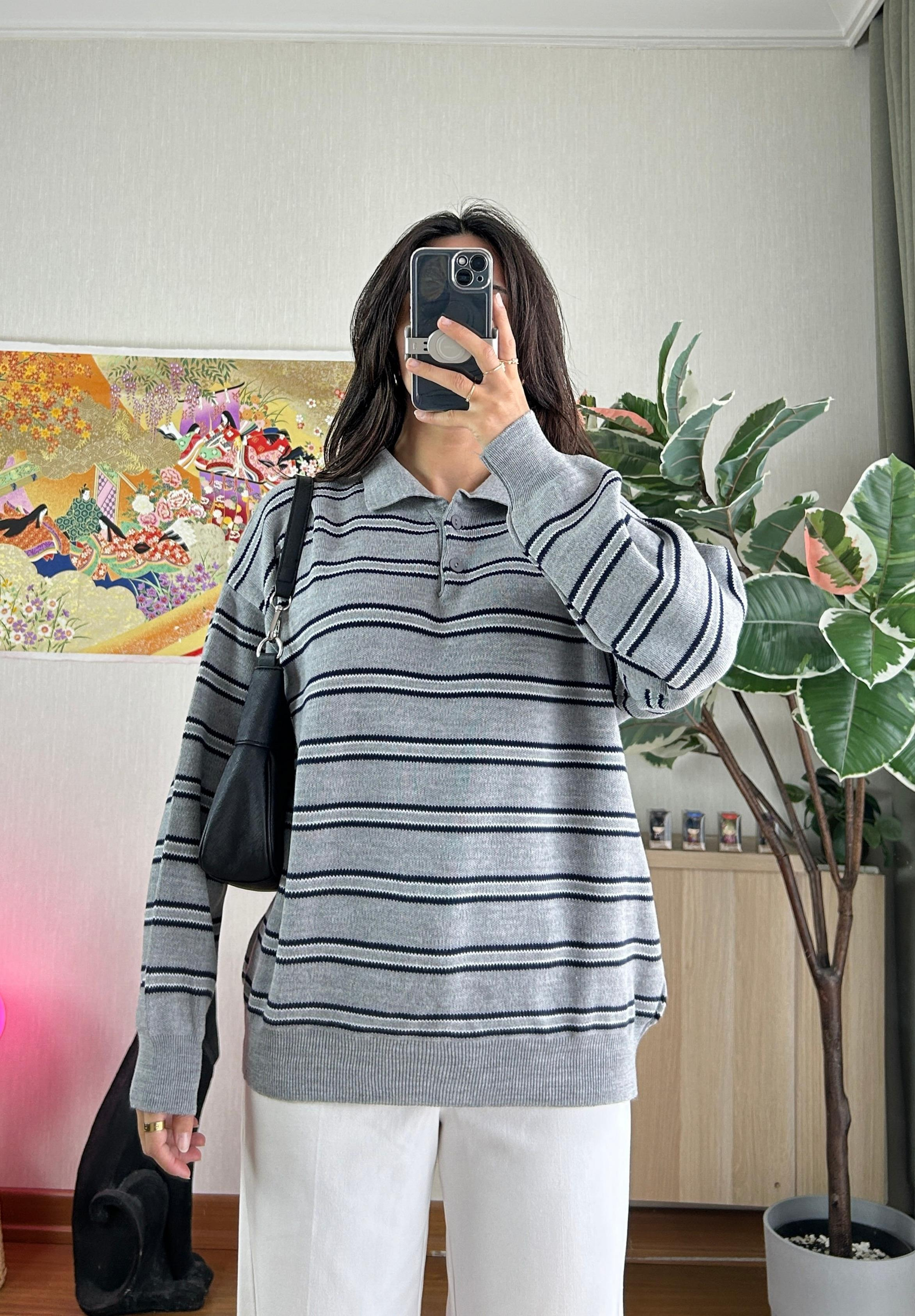 Suko Polo Yaka Triko Kazak Gri