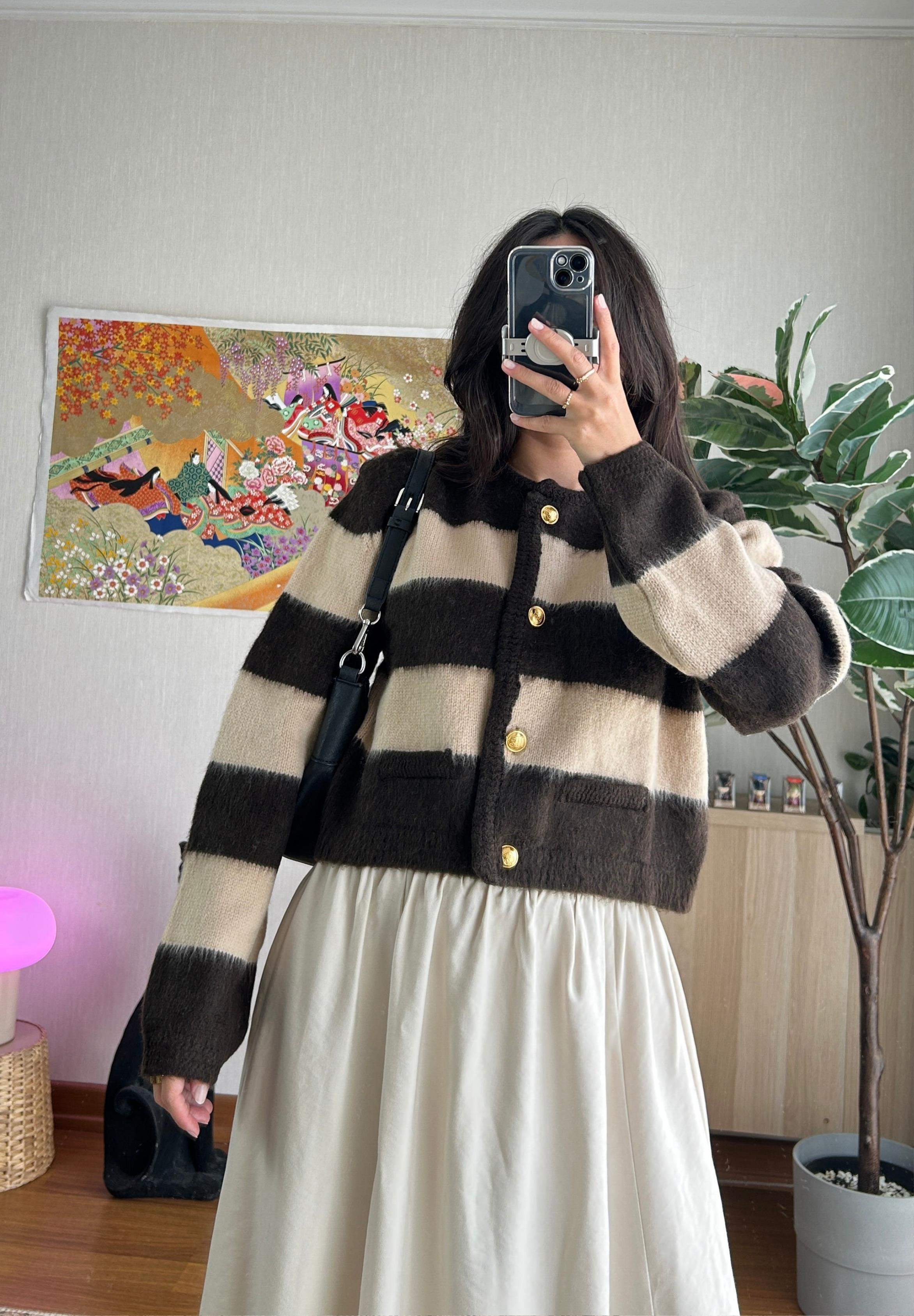 Toshiko Çizgili Hırka Kahve